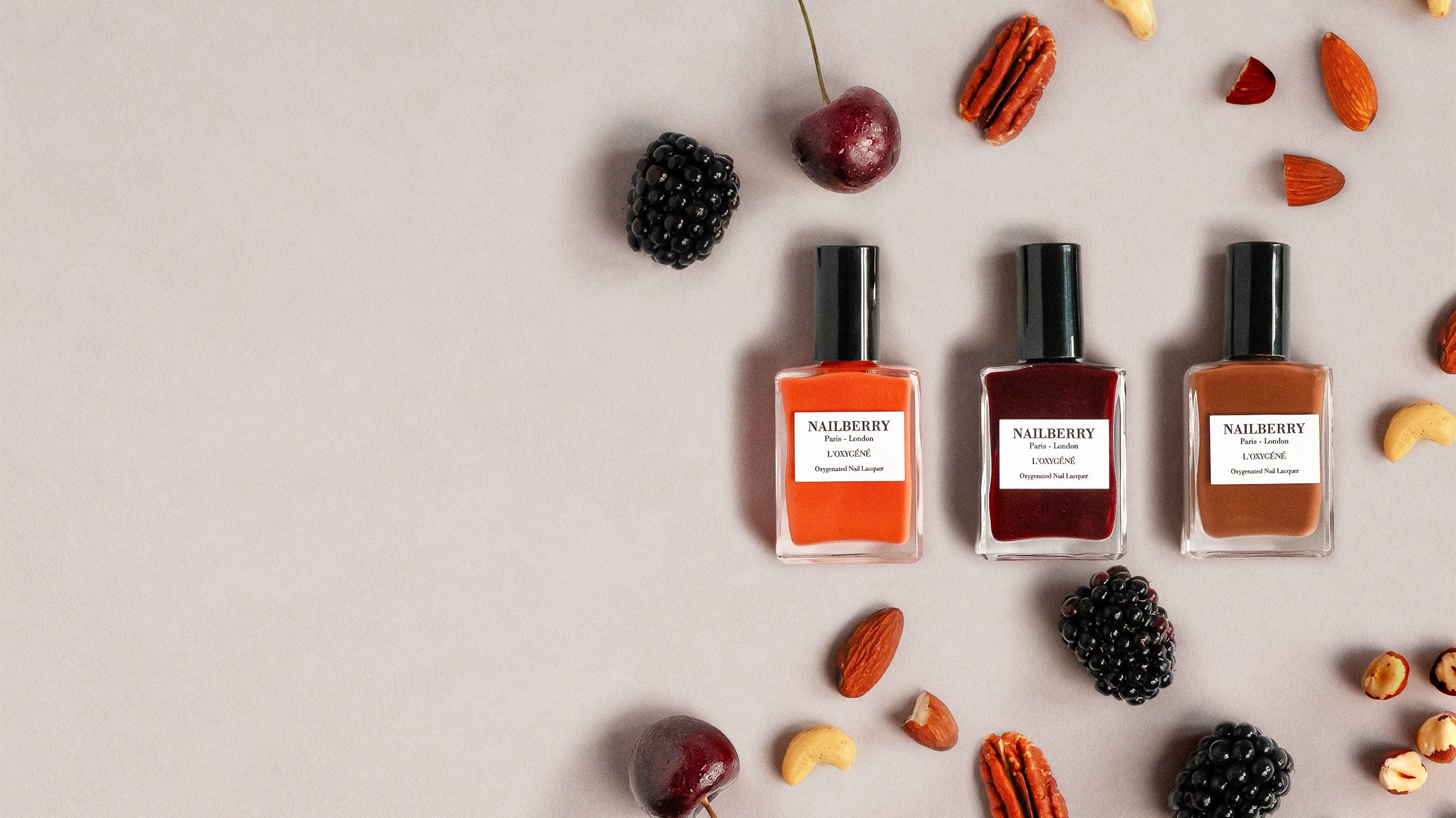 La gamme primée L'Oxygéné de Nailberry offre une manucure végétalienne, sans 12, plus saine, avec des nuances riches, longue tenue et très brillantes.