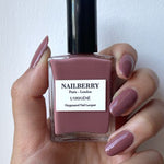 Dip brush into chosen Nailberry Base Coat, remove excess from brush, then apply one thin layer to each nail. Allow 2-3 minutes for base coat to dry fully.