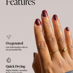 Prolongez la tenue et apportez une brillance optimale avec une couche finale de notre top coat SHINE & BREATHE OXYGENATED TOP COAT.