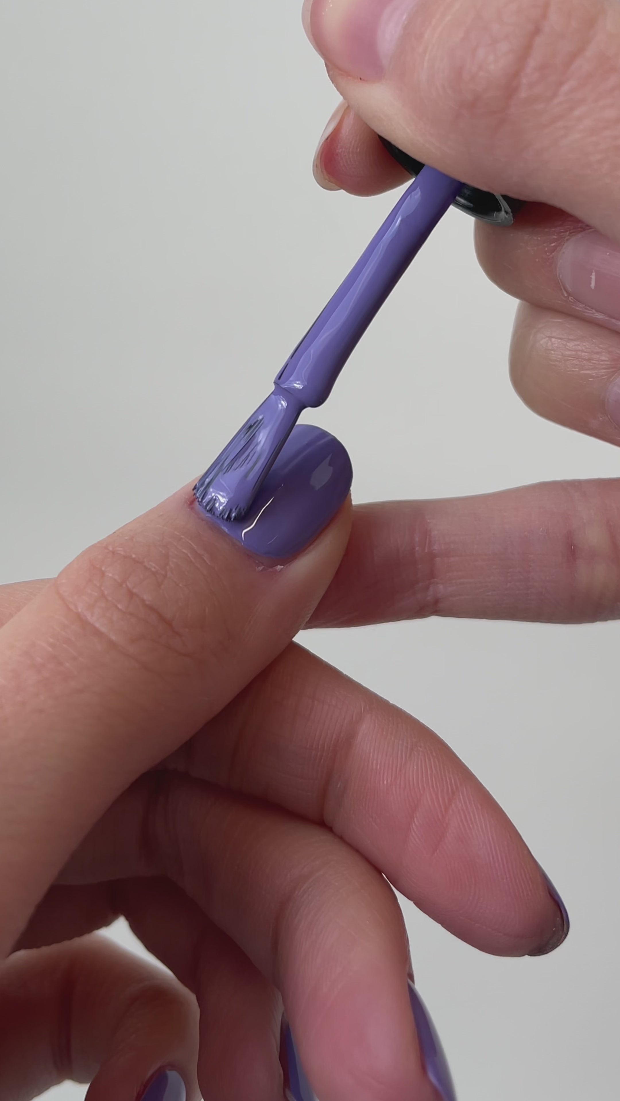 Appliquez une fine couche de votre vernis à ongles Nailberry, en utilisant notre pinceau intégré large et fuselé en partant de la base de l'ongle jusqu'à son extrémité. Alternez l'application sur chaque main afin de permettre à chaque couche de bien sécher.