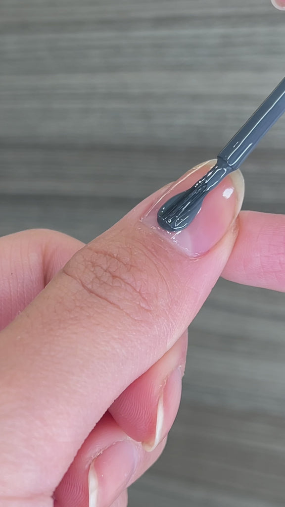 Notre vernis gris orage fait fuir les idées austères et apporte une touche contemporaine et minimaliste à votre look.