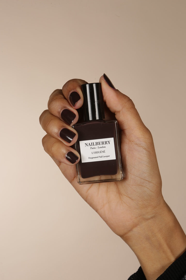 Appliquez une fine couche de votre vernis à ongles Nailberry, en utilisant notre pinceau intégré large et fuselé en partant de la base de l'ongle jusqu'à son extrémité. Alternez l'application sur chaque main afin de permettre à chaque couche de bien sécher.