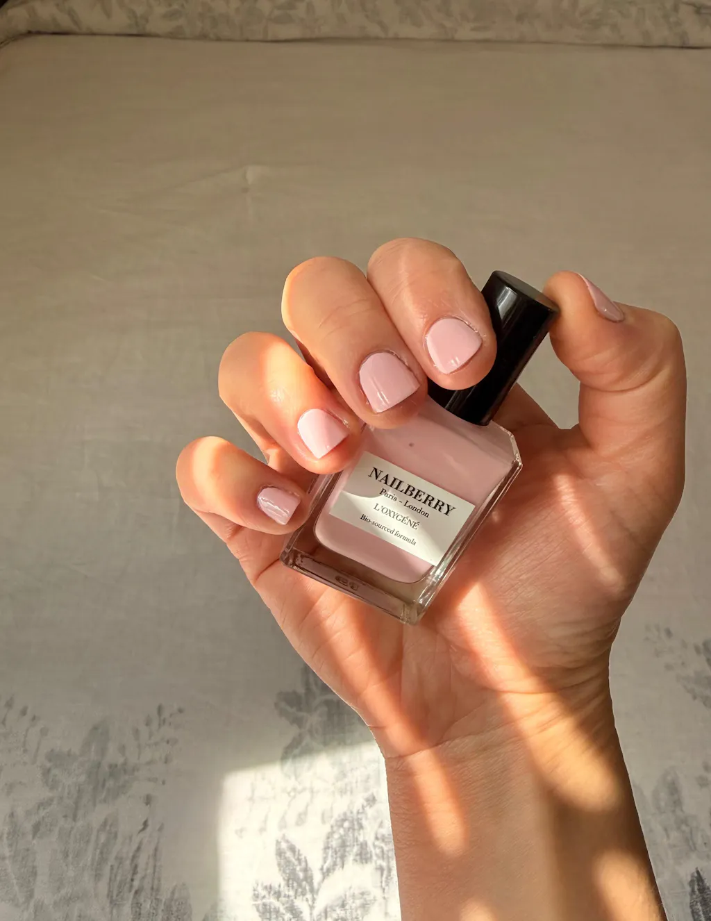 Appliquez une fine couche de votre vernis à ongles Nailberry, en utilisant notre pinceau intégré large et fuselé en partant de la base de l'ongle jusqu'à son extrémité. Alternez l'application sur chaque main afin de permettre à chaque couche de bien sécher.